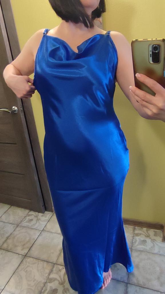 Цвет "королевский синий"👗 Ткань плотная, струящаяся😍 Ложиться хорошо) Сняла ⭐за отсутствие фото со спины