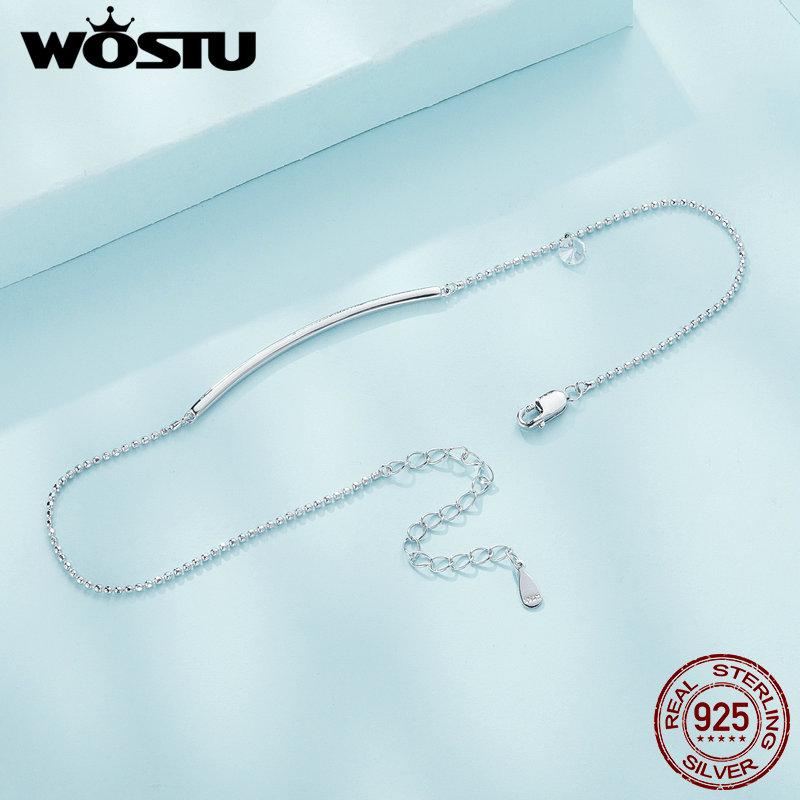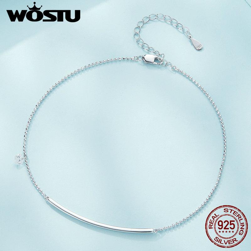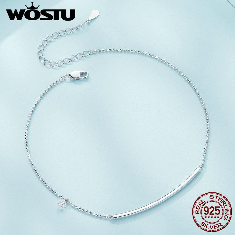 WOSTU Стерлингового серебра 925 пробы, простой браслет, сверкающая цепочка из бисера, браслет на ногу, минималистский ювелирный подарок