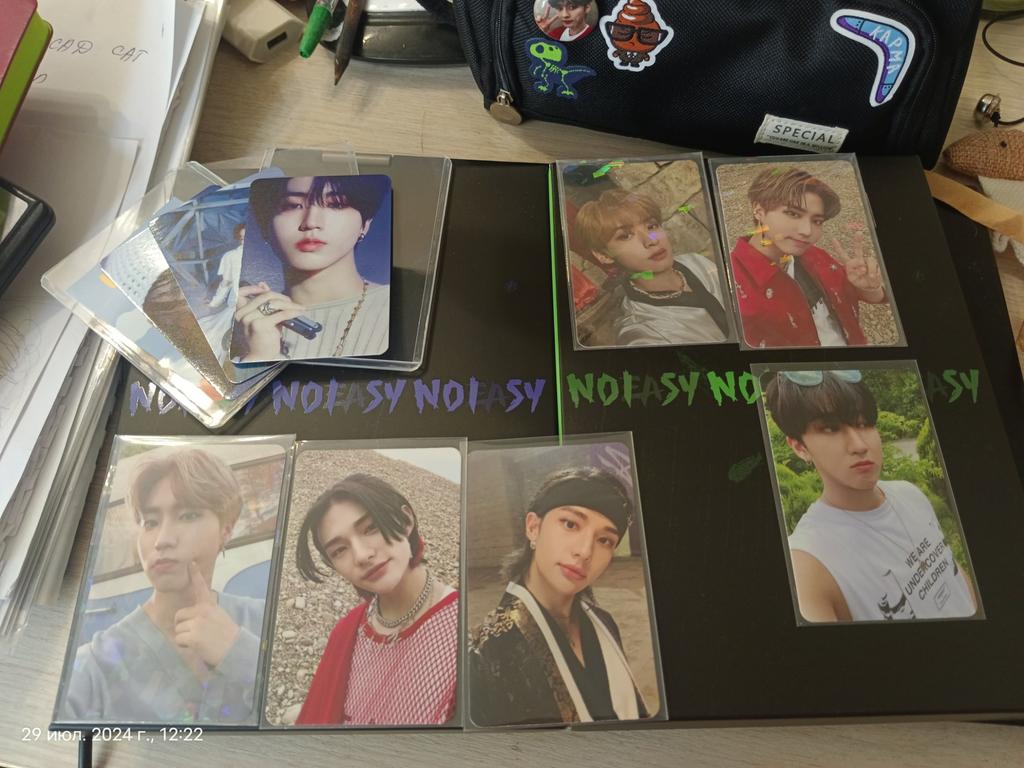 Посылка дошла быстро,заказывала версию В. В подарок положили две карти з файф старс,Сынмин и Хёнджина.Альбом был хорошо упакован,ничего не помнялось.Также положили два топлаудера(типа пластмассовий протектор,кто не знает) и также два красивых обычных протектора.Из карт,что йшли в альбоме попались Хёнджин и ЧанБин,ещё двухсторонняя карта с ЧанБином.Попался,похоже всего,на постер,с Ханом и Сынмином.Вся комплектация на месте,вообщем,покупкой я абсолютно довольна.