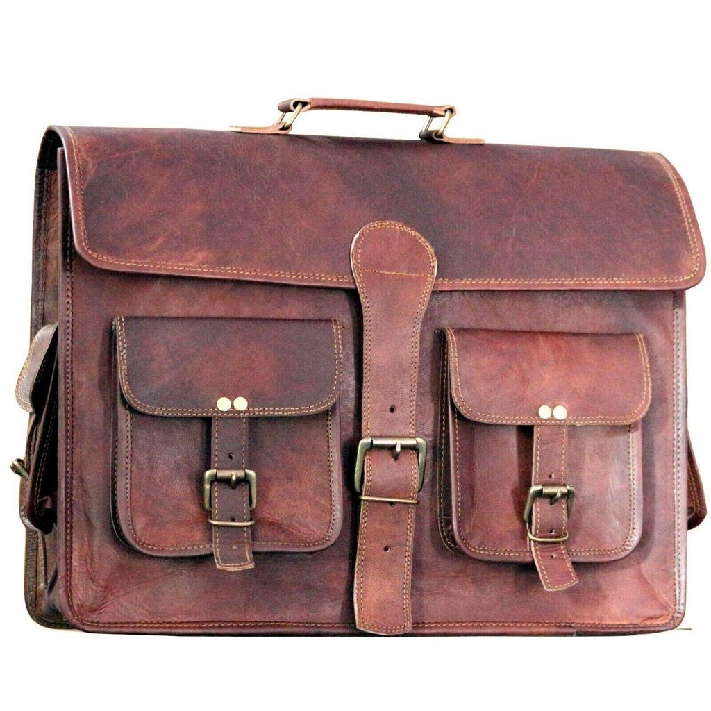 Мужской портфель для ноутбука через плечо из натуральной козьей кожи, винтажная коричневая сумка