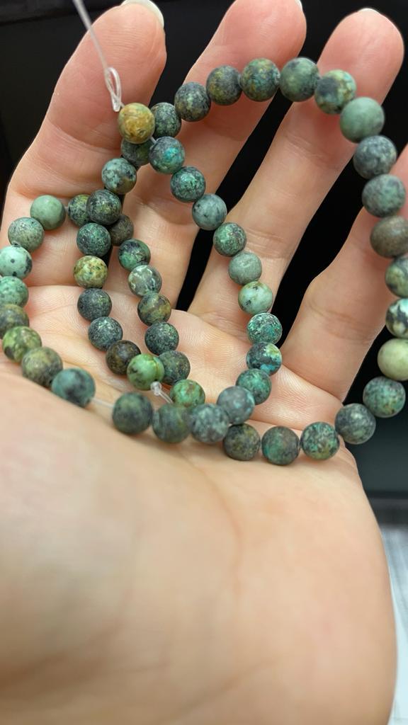 Бусинки матовые, но на фото они ярче, больше голубых тонов. У меня же попалось много темных. Ожидала большего. Матовость придает характер брутальности, для использования в мужских браслетах. Но хотелось как на картинке. Жаль. Количество бусин 44 вместо 48!