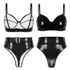 Комплект женского нижнего белья из 2 предметов из лакированной кожи с мокрым эффектом без косточек, бюстгальтер без подкладок, комплект из топа и трусов, клубная одежда