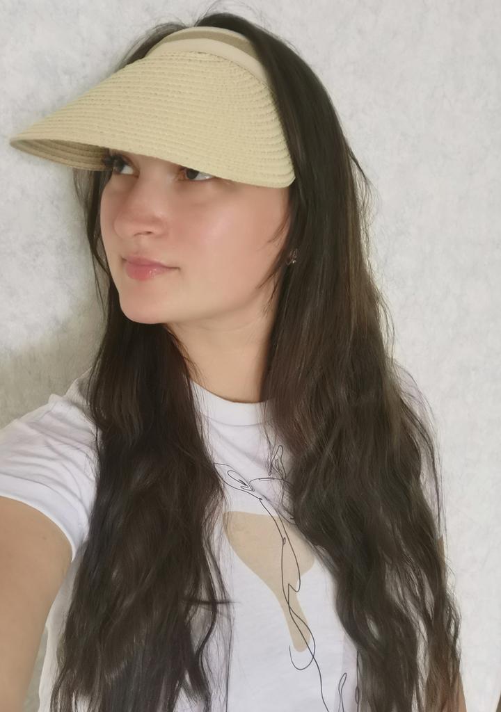 Соломенный козырёк от солнца ☀️ Всё косметологи нам твердят, что необходимо защищать свою кожу от солнца. Spf крема, шляпы, зонтики... корейская мода вносит свои коррективы 🤗 Я согласна, чтобы продлить молодость кожи и уберечь её от появления пигментных пятен - держись подальше от солнца. И вот, я решила себе заказать соломенный козырёк. 📦Доставка в Беларусь (Гомель) за 28 дней. Трек номер отслеживался на протяжении всего пути. Не смотря на то, что доехал козырёк мятым (упакован был в обычный пакет), звезды не буду снимать. Так как разгладился утюгом с паром быстро👍 Козырёк представлен в различных цветах (всего 6). Я выбрала классический песочный. Козырёк от солнца прекрасно держит форму. Размер регулируется. Отлично подойдёт на окружность головы 55 - 58 см. Материал - целлюлоза. Длина козырька - 13 см. На даче, пляже ношу не снимая. Мне даже больше нравится под козырьком и без солнцезащитных очков. Солнце не слепит и лицо закрыто. Рекомендую👍 #Fitita #лето #защитаотсолнца #пляж