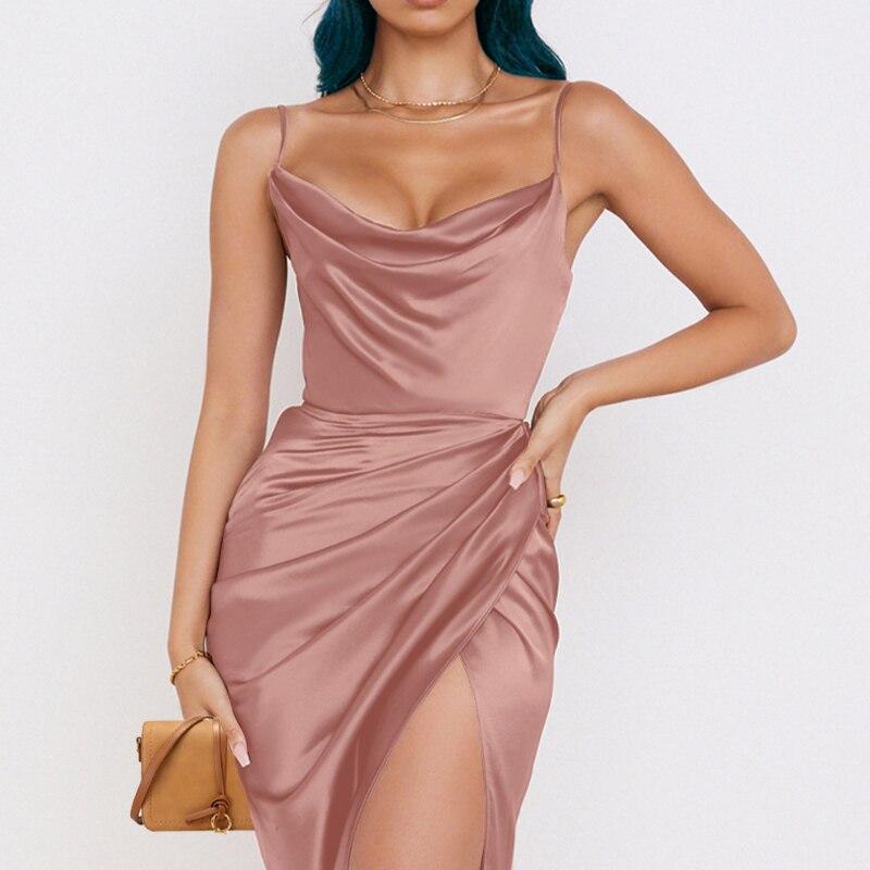 2023 модное атласное элегантное сексуальное платье женское тонкое платье с разрезом на бретелях для вечеринок и клубов с высокой талией облегающее платье без бретелек Vestido 24941