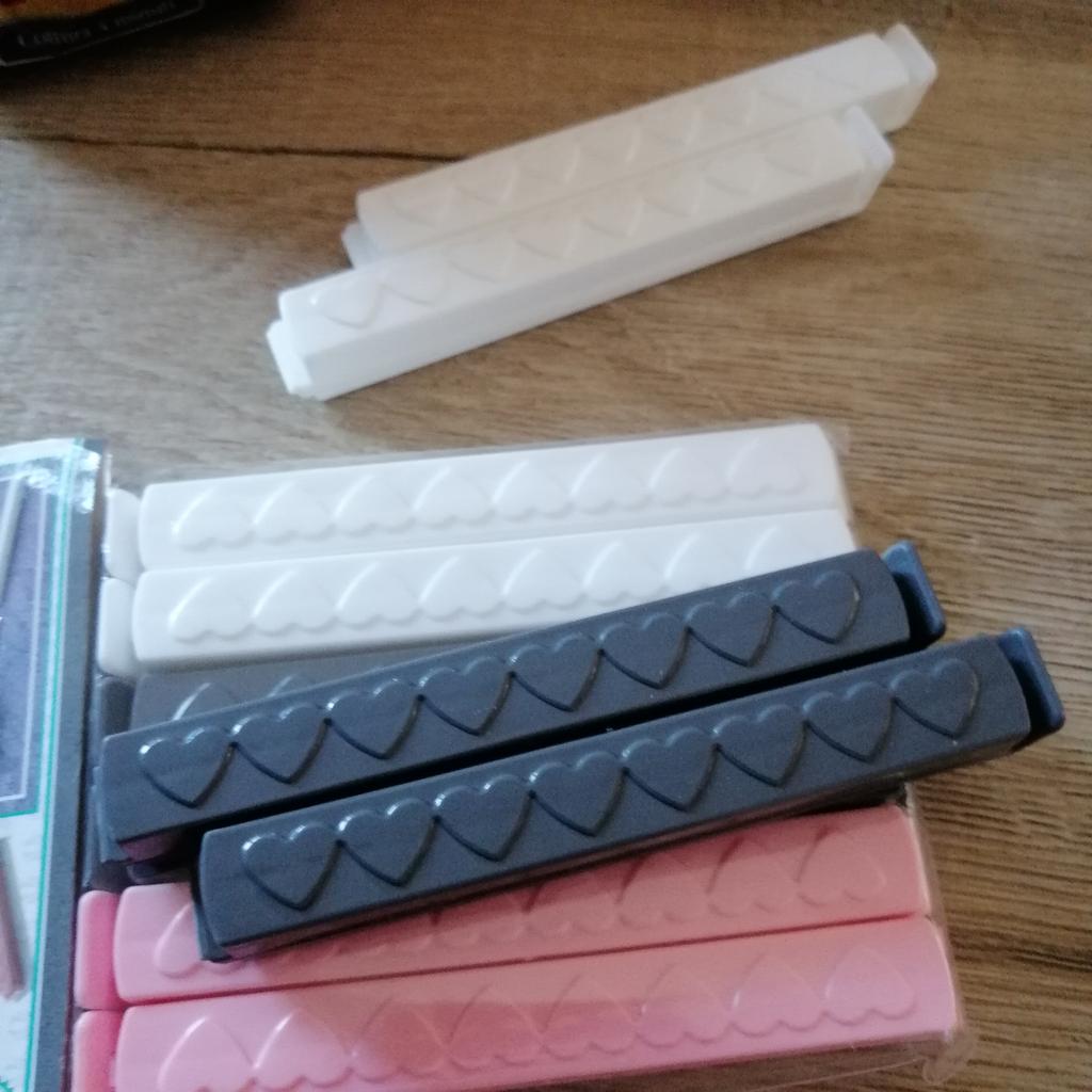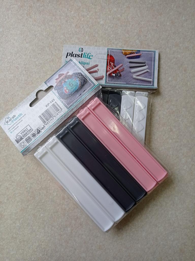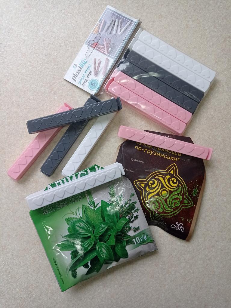 Зажимы для пакетов. Пластиковые зажимы нужны каждой хозяйке ежедневно-закрыть пакеты для хранения молока, многоразвые пакеты для овощей, крупы в пакетах, упаковки с макаронами, кофе, кошачий корм, пакеты для заморозки продуктов. Изготовлены зажимы из прочного пластика. В наборе идёт 12 шт. Размеры: длина 11см. ширина 1 см. Зажимы закрывают пакеты герметично. Такие зажимы можно мыть в посудомоечной машине. Пришли хорошо упакованы, без повреждения. Зажимы понравились, рекомендую.