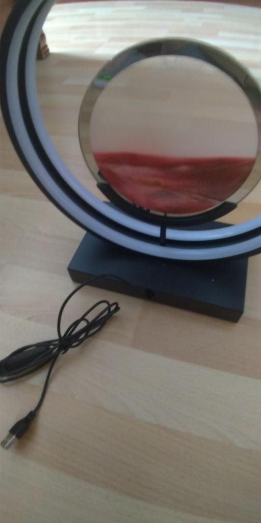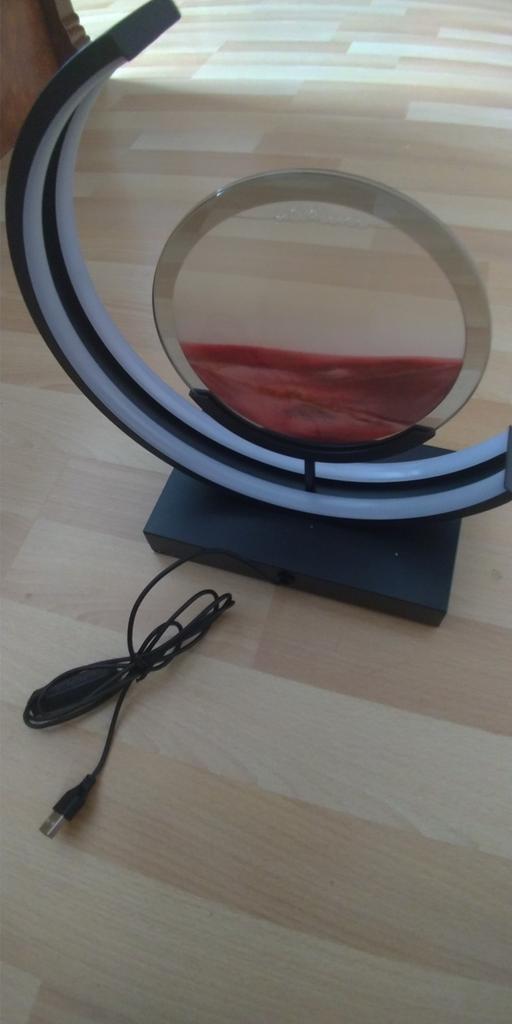 на вид лампа как в описании и на фото на страничке товара... ощущение металлического корпуса присутствует (характерный холодок при касании)... исполнение на 4 балла -- сама лампа-полумесяц и стеклянный диск с песком выполнены отлично, но вот собрано на подставке несколько кривовато (не критично, но всё же)... сама же подставка, по ощущениям из тонкого металла, внутри полая, снизу наклеена бархатистая матерчатая подкладка, которая при прощупывании легко проминается... на поверхности вся конструкция стоит устойчиво и вполне надежно... в комплектацию блок питания не входит... работает через USB, как от стандартной зарядки 5V, так и от компа (ноутбука)... при выборе, на страничке продавца, может создаться впечатление, что цвет свечения лампы зависит от цвета ее корпуса, но это не так... цвет свечения можно изменить от холодного до теплого (всего три градации -- холод, тепло-холод, тепло)... в приложенном видео может показаться, что температура свечения не слишком контрастна, но это погрешность камеры, на самом деле разница между холодным свечением и тёплым достаточно ощутима ... так же регулируется и яркость свечения... как прикроватная лампа декоративного свечения, или ночник, подойдет на отлично... лампа высылается не в заводской упаковке, так что если берете в подарок, подумайте над подарочным видом... в целом покупкой доволен... продавцу спасибо...