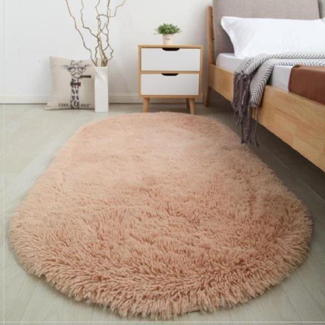 Овальный плюшевый ковер, плюшевый ковер, детская кровать, мягкий бархат, однотонный, толстый напольный коврик для гостиной, спальни, домашний декор