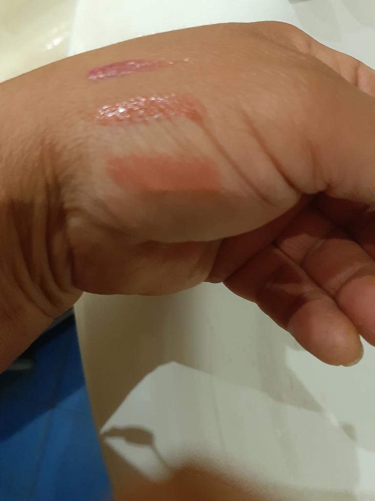 Помада (не БЛЕСК) стойкая. Держится достаточно долго. Правда, из-за цветопередачи смартфона цвет оказался не телесный нюдовый, а розоватый.
