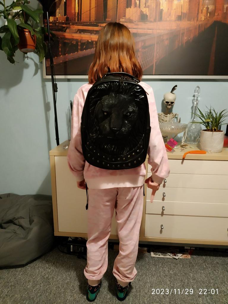 Я заказывала дочке рюкзак с волком, а прислали нам льва-обезьяну, который стоит дешевле((( Дочь принципиально хотела волка! Рюкзак, что прислали, не большой, у него только одно отделение, а у волка - два! Так же у волка бегунки на молниях декоративные(костлявые руки скелета), а у льва обычные(( Заклёпки-шипы на волке длинные, а здесь короткие. Ну и волк выглядит круче, с открытой пастью, белыми клыками, "натуральными" глазами. А этот лев похож на обезьяну, глаза-заклепки, один глаз косит и вообще эти глаза дочку пугают. Служба Поддержки вернёт мне половину стоимости этого рюкзака. Кстати, рюкзак химозой не воняет, качество хорошее. Волк, которого я заказывала, должен быть больше. Лев имеет такие параметры: высота 37см, ширина 28см, глубина 10 см. На последнем фото рюкзак на девочке 10 лет.