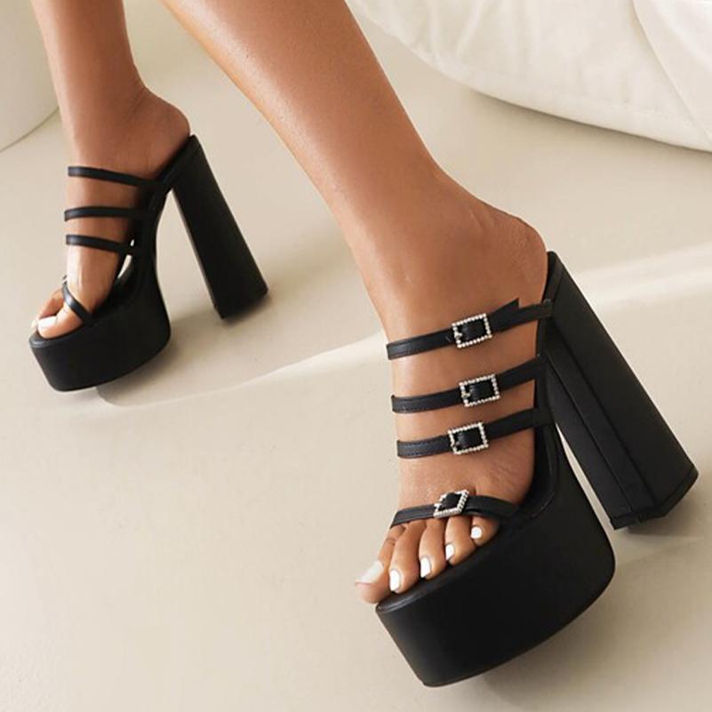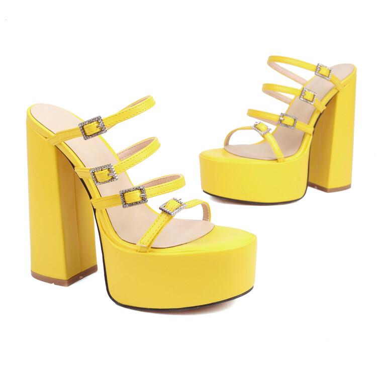 Женские туфли-лодочки на платформе, на высоком каблуке с копытами, с круглым носком и пряжкой с кристаллами, лаконичные вечерние весенне-осенние туфли, черные, желтые, красные, 34–46