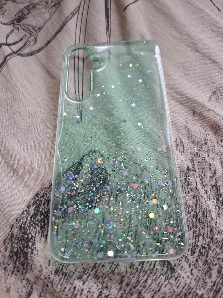 Чехол с блёстками:✨️ 💜Пришёл довольно быстро,где-то за 2 недели. 💜Запакован был хорошо. 💜Блёсточки очень красиво переливаються. 💜Сам чехол прозрачный с фиолетовым отливом. 💜Неприятного запаха не имеет. 💜Отлично сел на модель смартфона Samsung a04e. 💜Отлит хорошо,блёстки не цепляються и не "торчат". 🦋Очень довольна покупкой!🦋