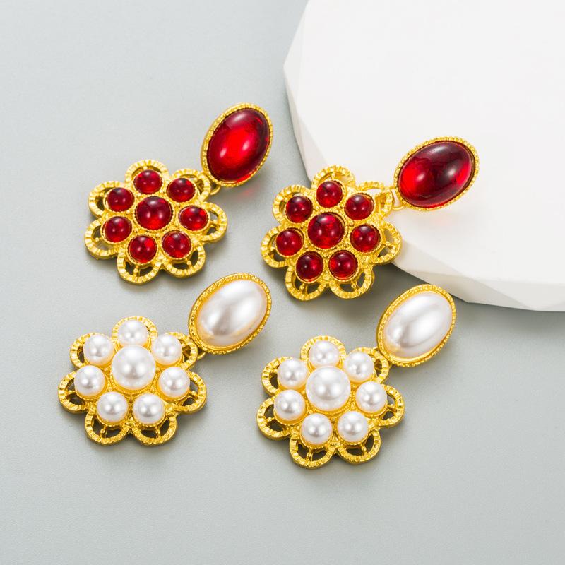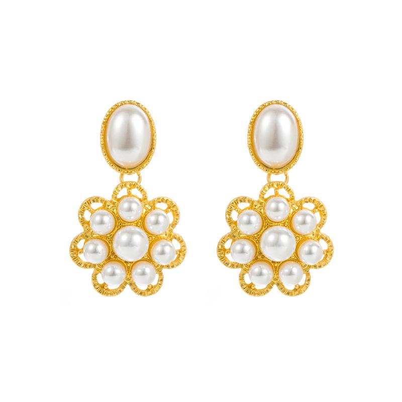 Женские серьги-капли в стиле ретро, серьги-подвески из титанового стального сплава, акриловая смола, жемчужные цветы, геометрические украшения для ушей