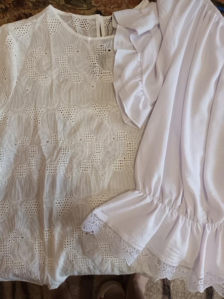 Легкая, тонкая блуза. Ткань не чисто белого цвета, очень много ниток на лицевой стороне ткани, так как ткань типо "шитье". В общем оставила. Пришлось посидеть убрать все торчащие нитки с лицевой стороны. Резинка на рукаве мне показалась лишней, я ее убрала. Блузу отбелила. Буду носить!