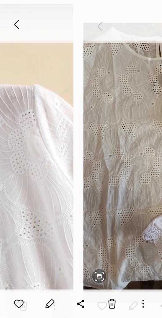 Пять звёзд конечно не заслуживает В целом неплохой вариант на лето, НО цвет далекО не белый, такое ощущение застарелого, пожелтевшего от времени материала 😏 (четвёртое фото в сравнении с белой кофт.) Последние два фото: фото продавца и то, что получила 🧐🙈 Вот думаю, может получится отбелить???