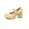 Женские туфли-лодочки из искусственной кожи на массивном каблуке с круглым носком Мэри Джейн с пряжкой, милая вечерняя весенне-осенняя обувь, черный, белый, желтый, зеленый
