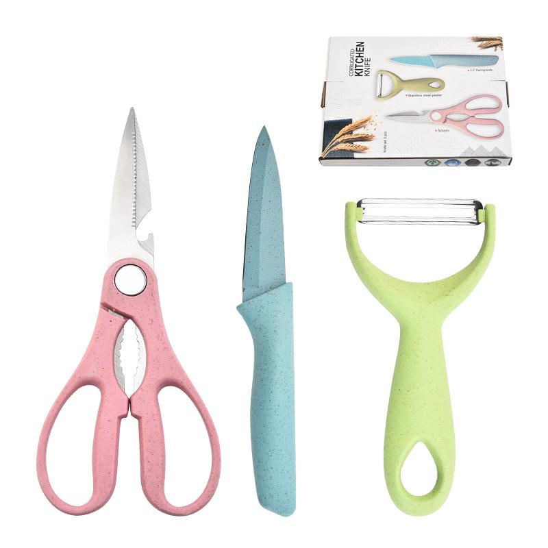 Цветная коробка из трех частей, кухонный нож из нержавеющей стали, набор кухонных ножниц для фруктов