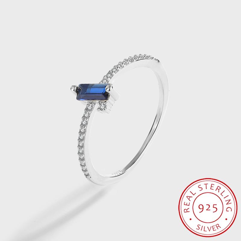 Изысканное кольцо из стерлингового серебра с синим цирконом, женское простое синее блестящее циркониевое кольцо из стерлингового серебра, ювелирное изделие, кольцо для вечеринки, обручальное кольцо невесты