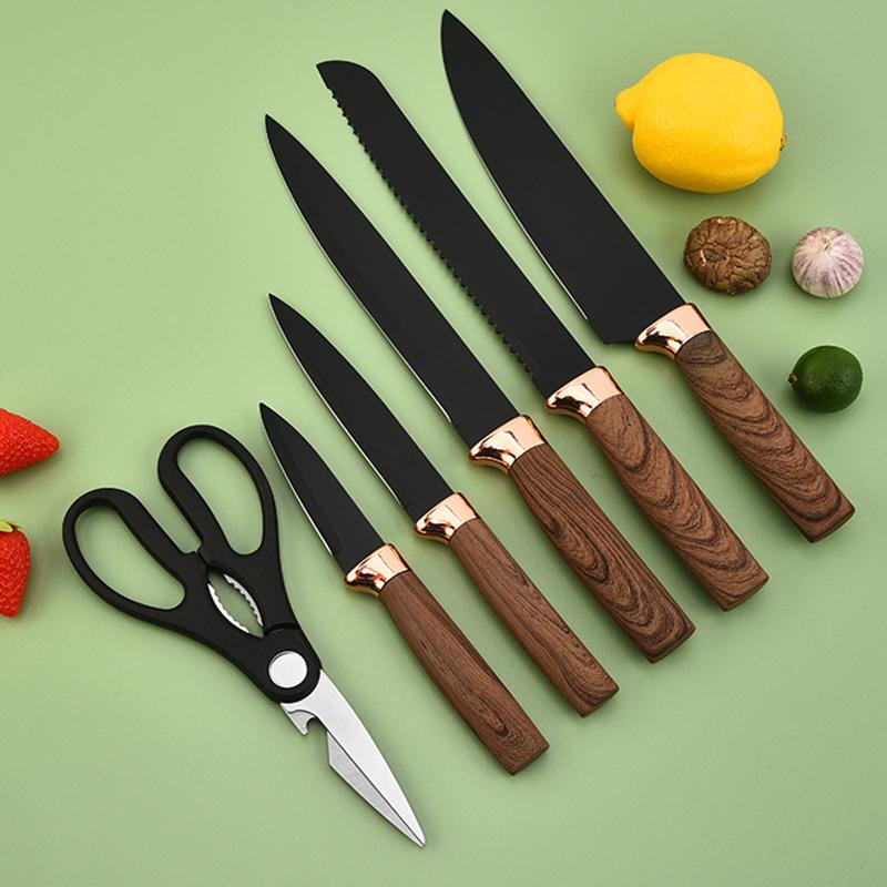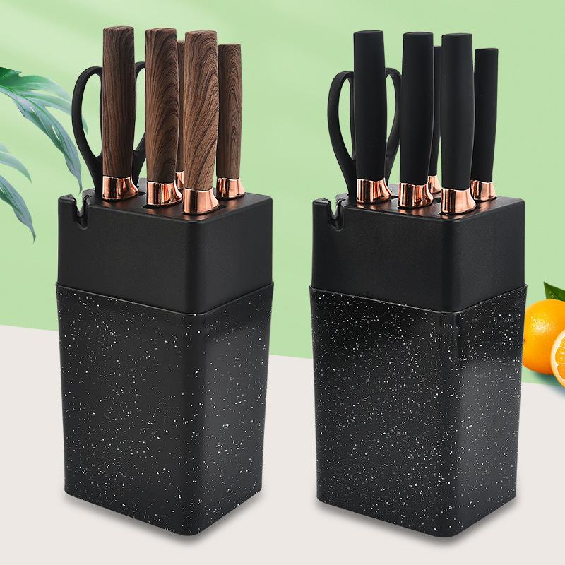 Нож из розового золота с гальваническим покрытием Нож из семи частей Черный кухонный набор из нержавеющей стали Нож с подставкой для ножей