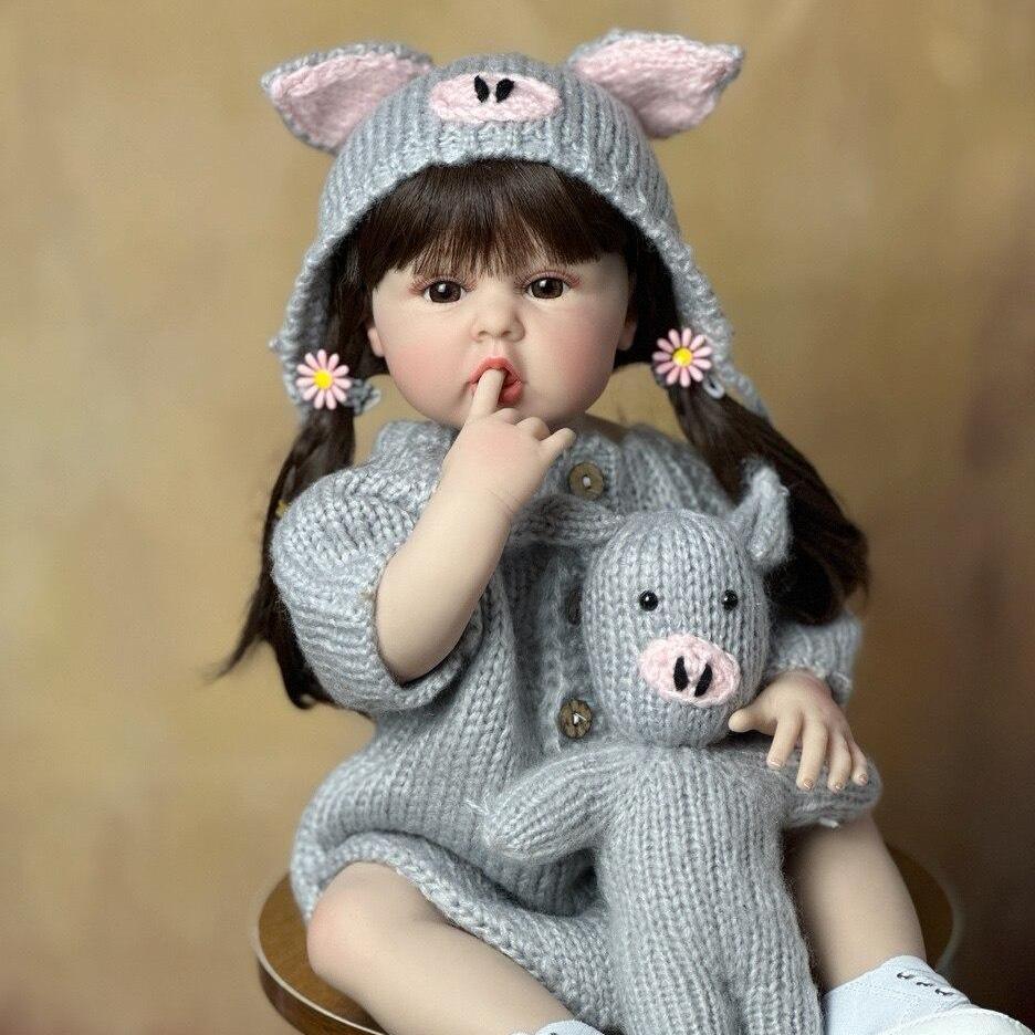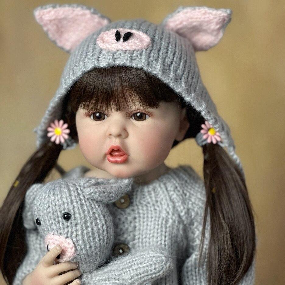 55 см Reborn для маленьких девочек, полностью силиконовое тело, реалистичное, 22 дюйма, длинные каштановые волосы, кукла принцесса для малышей Bebe, подарок на день рождения