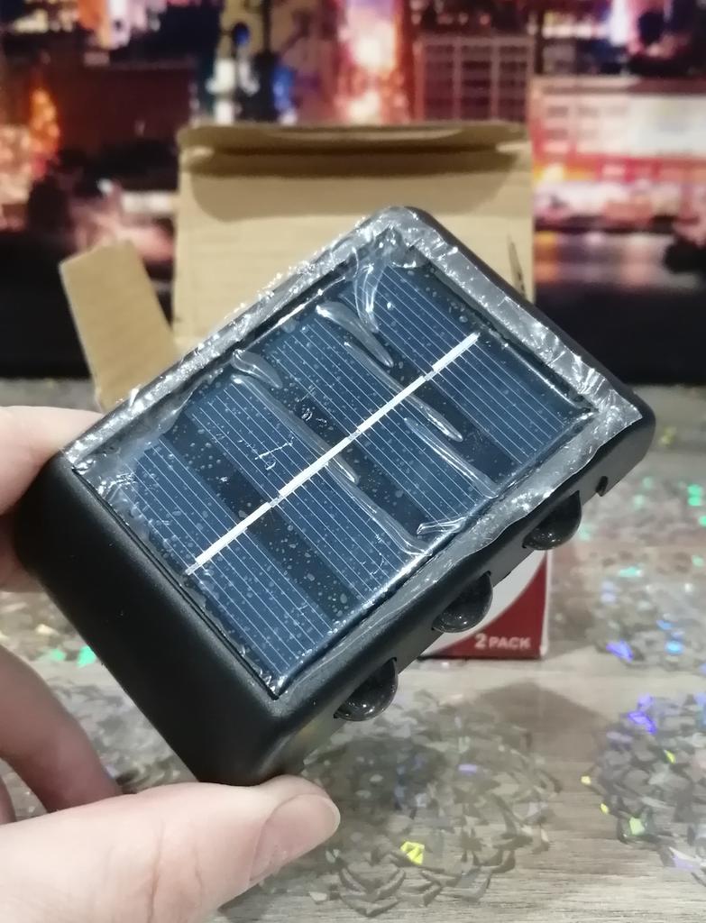 Садовый светильник двусторонний на солнечной батарее. Скорее декоративный, чем практичный, но он очень красивый 😍 Всего 6 led лампочек: по три сверху и снизу. Светят в теплом диапазоне. В комплекте 2 типа креплений: с болтами или двухсторонний скотч. Можно крепить на наружную стену дома или на забор, везде смотрится здорово. Если использовать сразу несколько таких светильников, вид будет ещё круче.