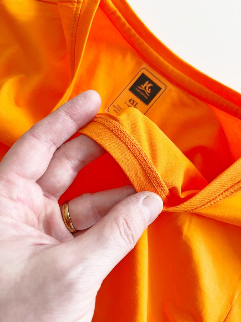 Удобная футболка для жарких летних дней! В этом магазине покупаю одежду уже два года, не только себе, но и супруге, всегда отличное качество и прекрасный сервис👍 Не стало исключением и моё последнее приобретение, это снова будет хваст! 🙂 Качественная фабричная вещь, все швы идеально ровные, как снаружи, так и внутри, все края обметаны, пошив просто безупречен, исполнение в традициях лучших брендов, я постарался всё показать на детальных фото👌 Материал - хлопок плюс спандекс, 95/5, несмотря на наличие в составе синтетики совсем не парит, и прекрасно тянется. Достаточно тонкий, но плотный и абсолютно не просвечивает, тактильно и на теле очень приятный👌 Имеется этикетка с составом и рекомендациями по уходу, а также прозрачная наклейка с размером. На свои 185 роста и 125 ОГ взял по таблице продавца размер 4XL , футболка, естественно, получилась немного в обтяжку сверху, как по мне, совсем не критично, ну а тем, кто любит свободную посадку, или оверсайз, можно взять и на размер больше своего обычного. В магазине можно выбрать цвет из целых десяти 👌симпатичных вариантов, размерная сетка - от М до 4XL, замеры вещи полностью соответствуют заявленным. Крой классический, прямой, круглая горловина. Мой цвет у продавца называется оранжевый, яркий, насыщенный, именно такой, как я и хотел. Доставка составила две недели в Варшаву, Польша, забрал посылку в почтовом отделении. Упаковка - фирменный и почтовый пакет, внутри картонка. Никаких посторонних запахов при распаковке не обнаружил. Заказ оставил только самые приятные впечатления, бренд снова меня порадовал качественной вещью, с удовольствием могу рекомендовать к покупке всем вам!