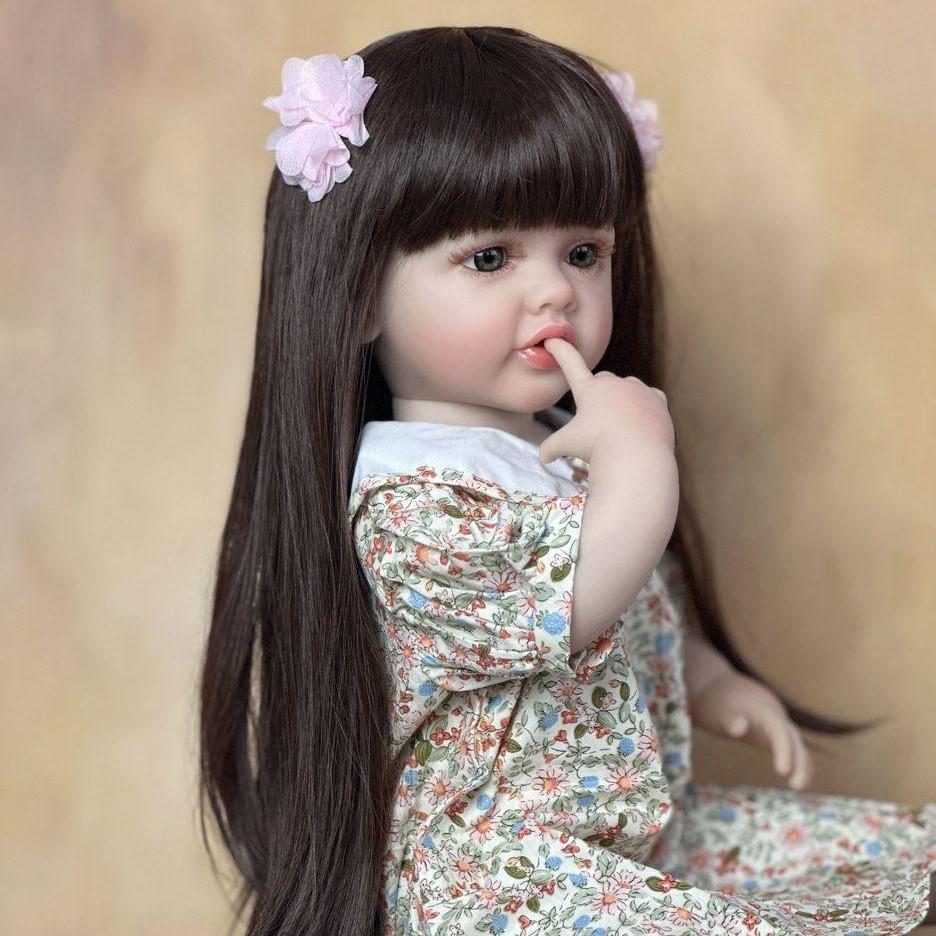 Полный мягкий силиконовый корпус 55 см 22 дюйма Reborn Baby, реалистичная кукла с длинными волосами для девочек, реалистичная принцесса для малышей Bebe, подарок на день рождения