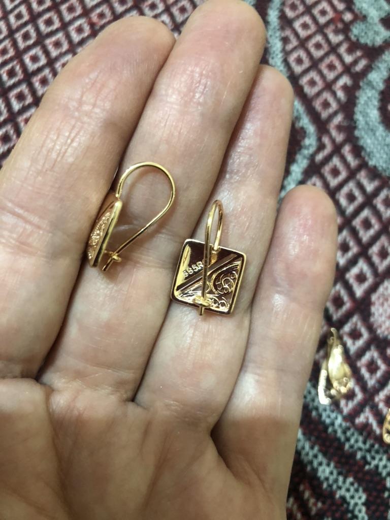 Эти сережки я заказала просто потому, что они были недорогими и с множеством отличных отзывов. Думала, что пожалею о покупке, так как не лелеяла надежду, что буду их носить. Дизайн не мой. Хотела подарить маме. Но этот заказ оказался самым лучшим по качеству. Не к чему придраться, правда 😄 Застёжки крепкие, сережки без дефекта и зазоринки. Блестят. Они больше медные, чем золотые. Как теплое розовое золото. Уши от них не болят, хотя они у меня привереды ещё те. Рекомендую на все 100%