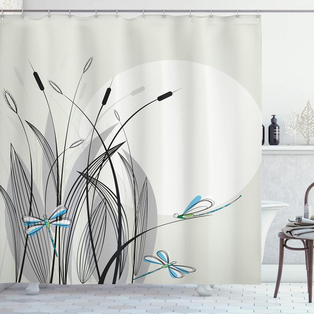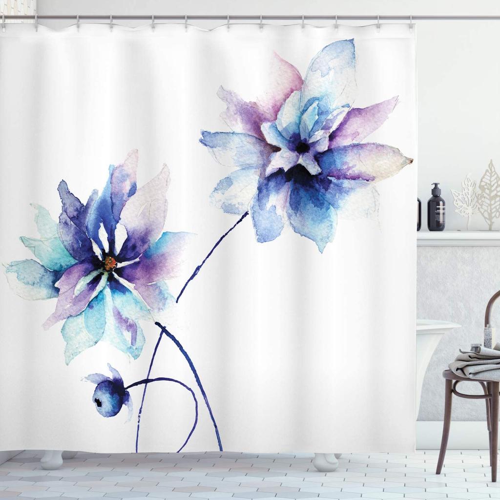 В коплект входит: 1 x занавеска для душа и 12 крючков