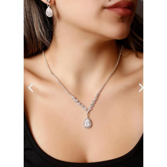Аксессуар Текстильный Посеребренный Водный Путь Циркон Камень Ожерелье Серьги Набор Свадебный Комплект Ювелирных Изделий Обручальный Набор Приглашение На Вечеринку Набор