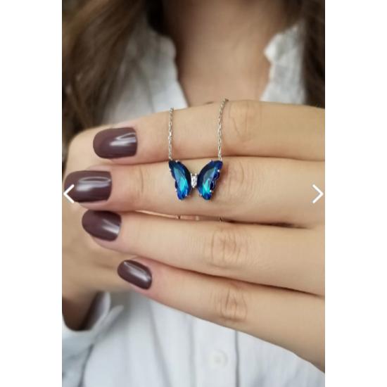 Женское ожерелье из стерлингового серебра 925 пробы с вышивкой бабочки из специального синего камня
