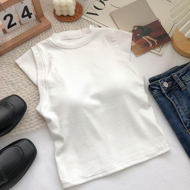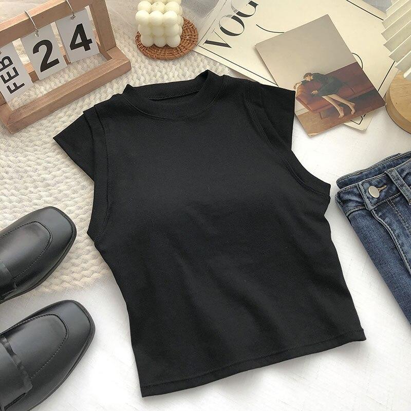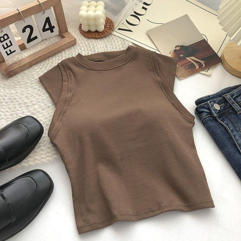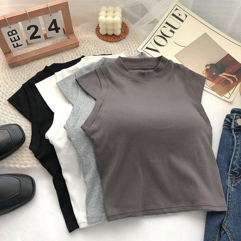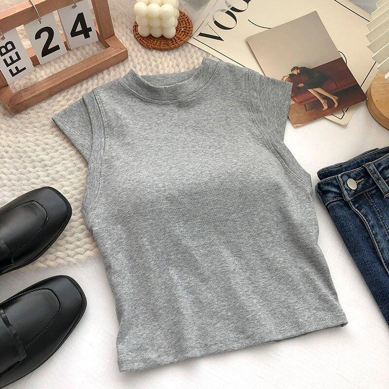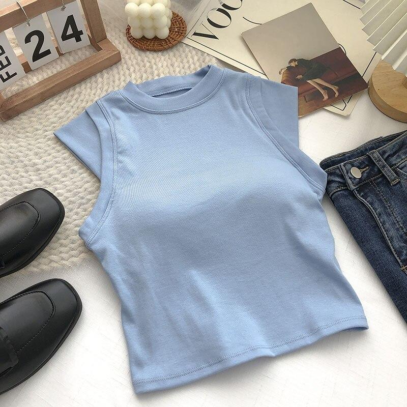 ITOOLIN Женские хлопковые майки с подкладкой для бюстгальтера, весенние повседневные укороченные топы без рукавов, вязаные топы для женщин, шикарная универсальная кофточка