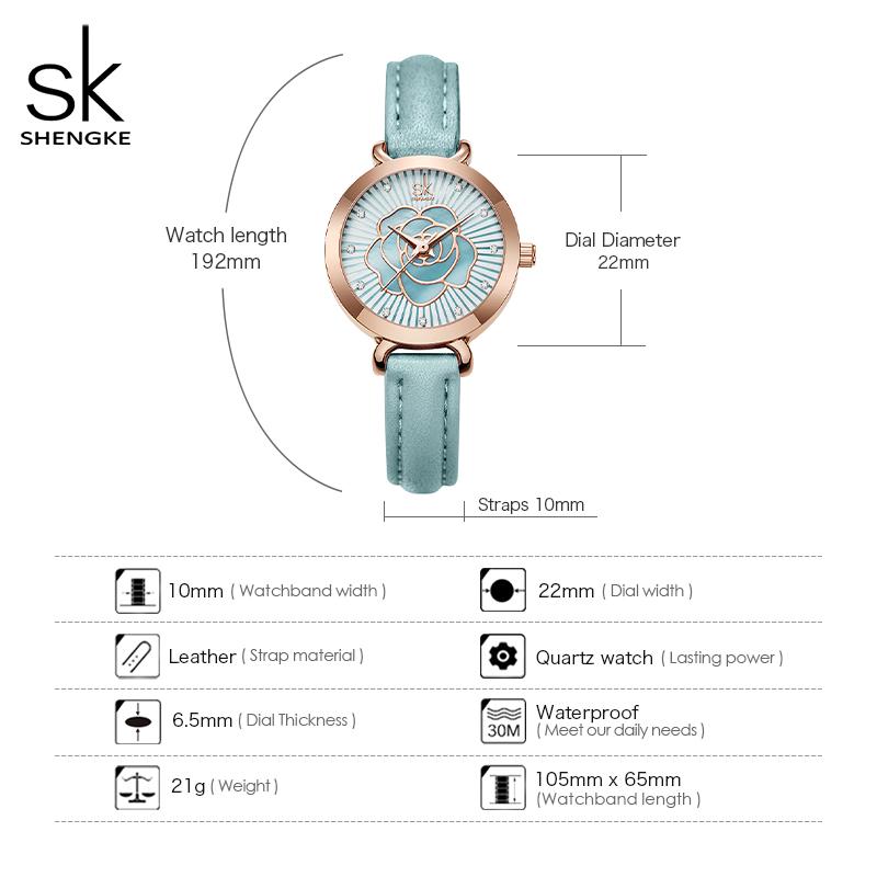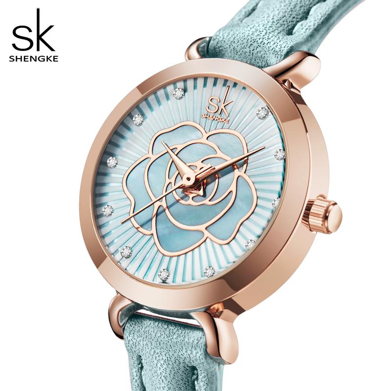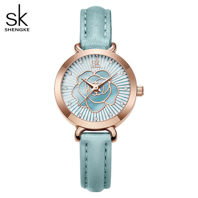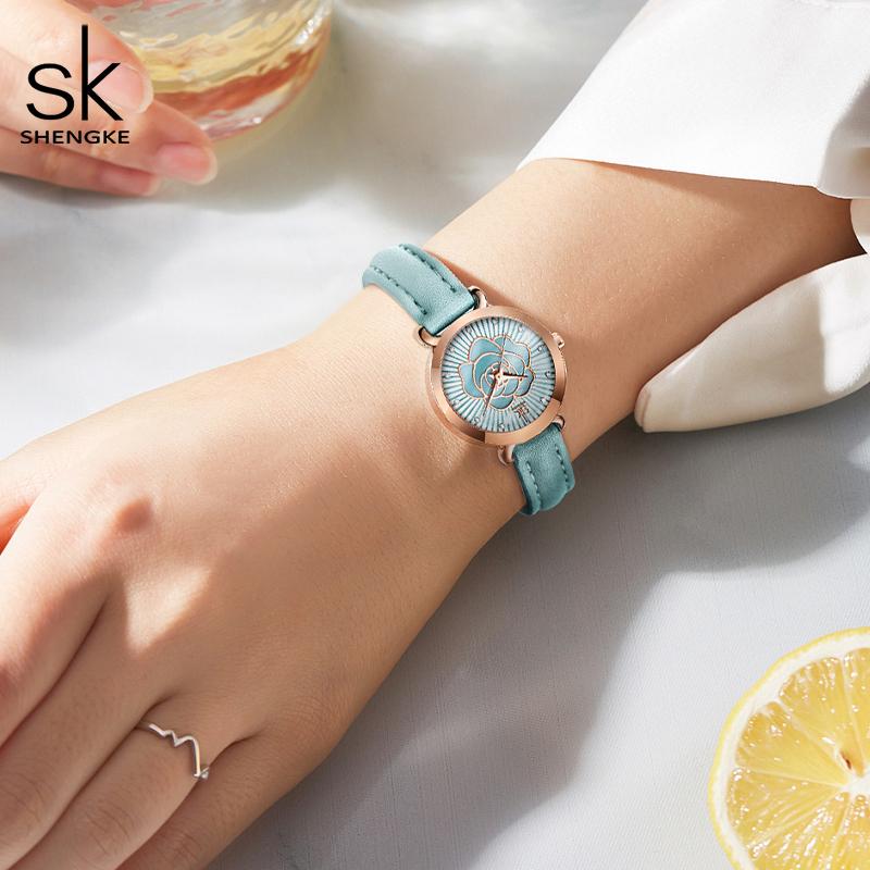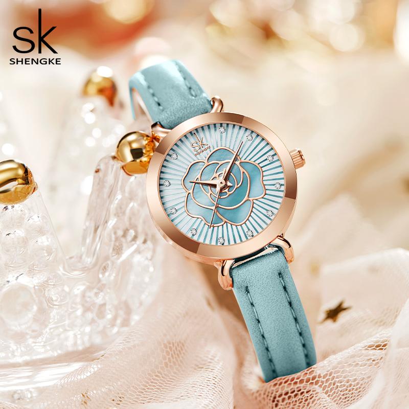 SHENGKE Летние часы для женщин Красочные синие часы Женские изысканный дизайн циферблата Тонкий ремешок Водонепроницаемые женские кварцевые часы