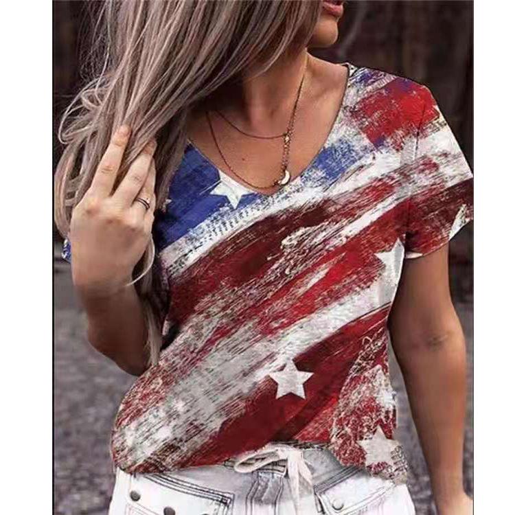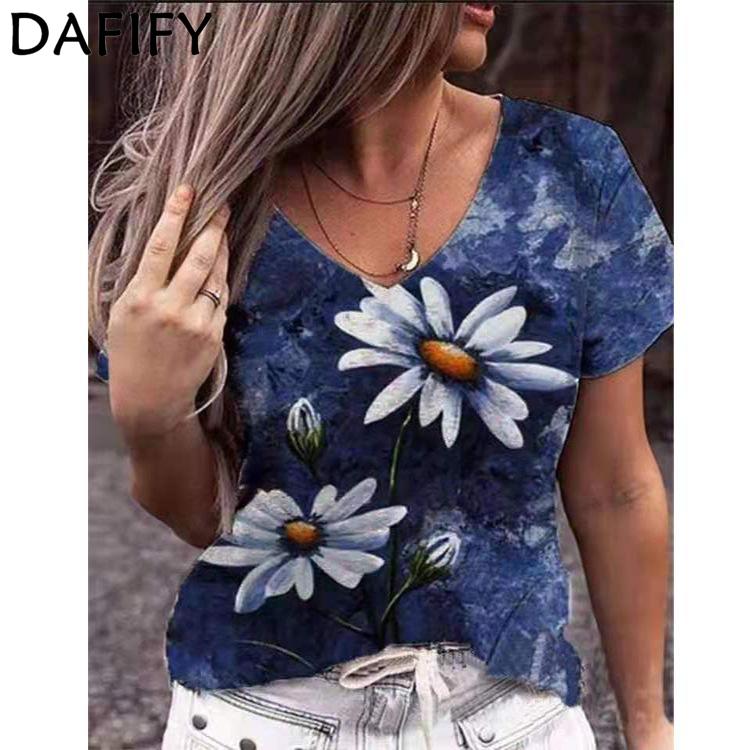 DAFIFY Женская мода, летние повседневные футболки и топы с v-образным вырезом и короткими рукавами с цветочным узором