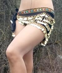 Пояс отличный, качественный, материал бархат мягкий, железные украшения шумят во время движения, классно. В танце прекрасно сочетается и с желтой большой юбкой. Спасибо продавцу.
