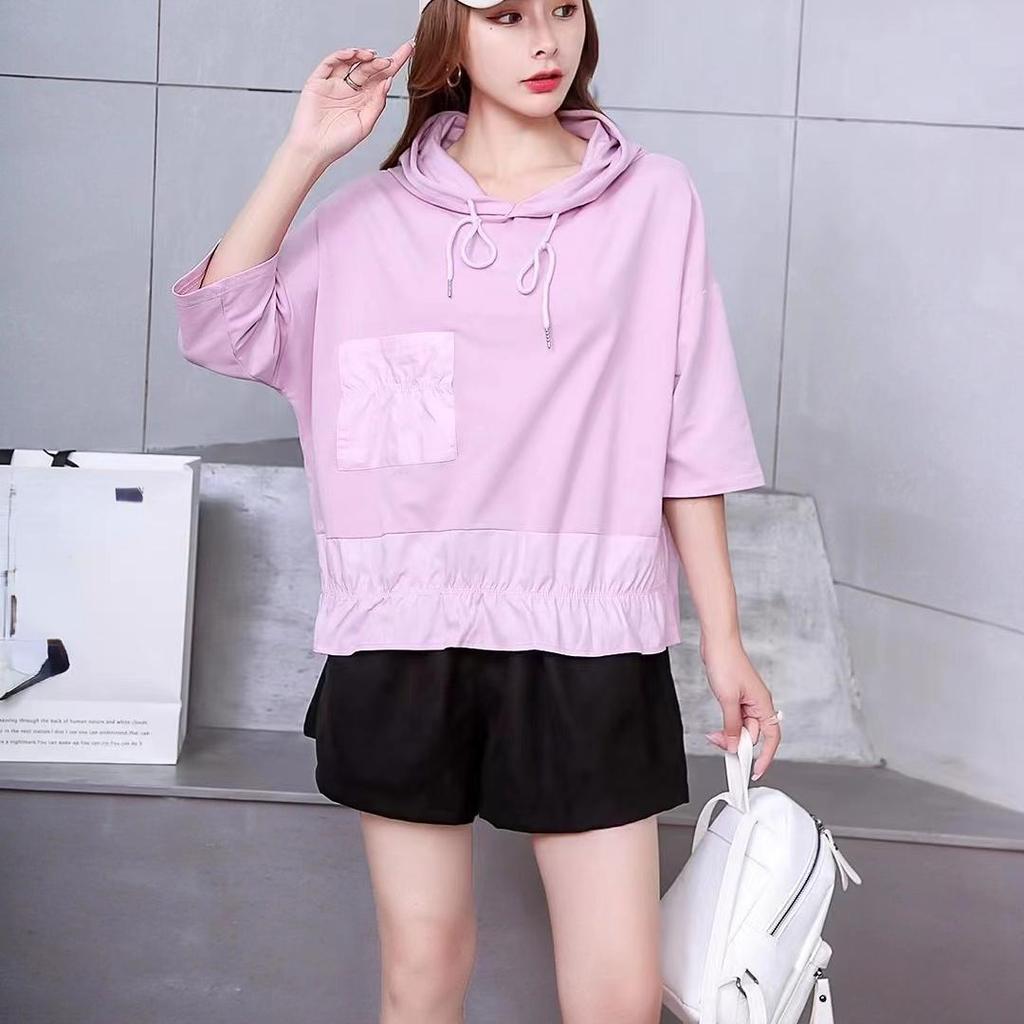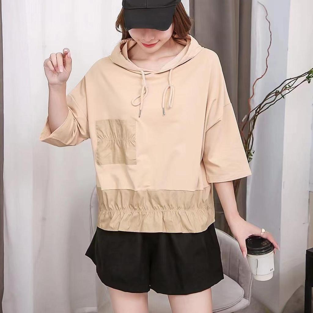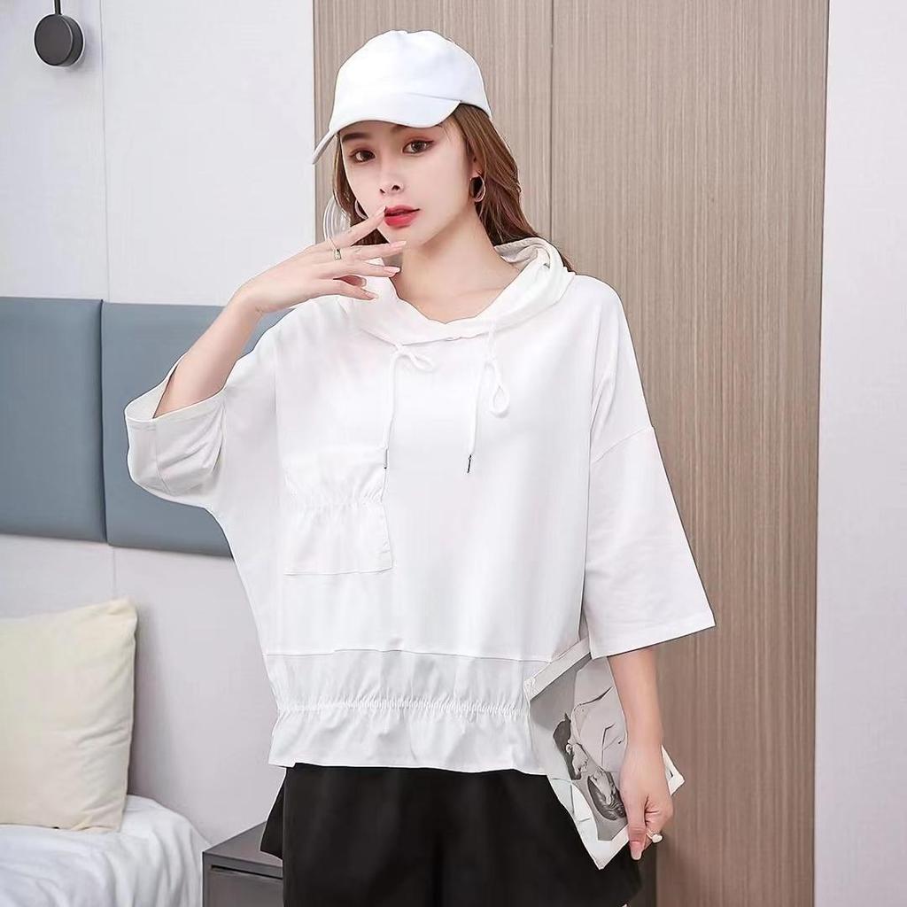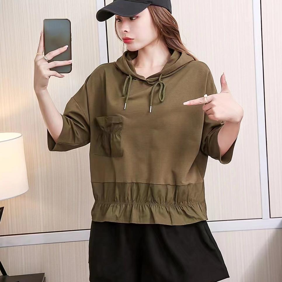 DIMANAF Новинка 2023 года, женская футболка с капюшоном, женская однотонная хлопковая футболка с круглым вырезом, свободные топы с короткими рукавами и футболки желтого цвета