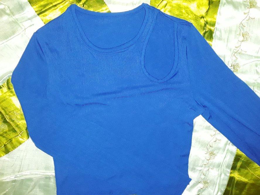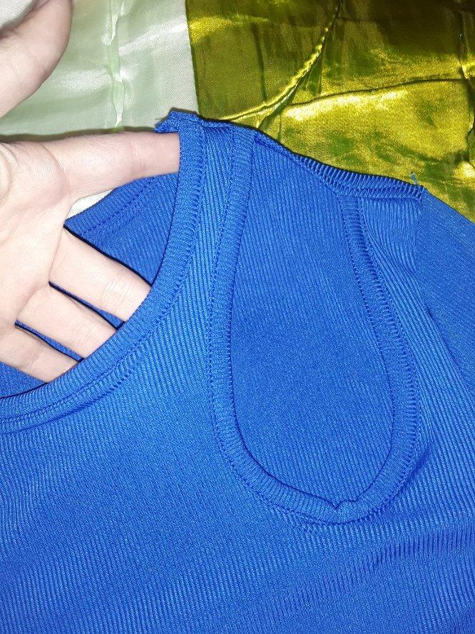 Синяя кофточка с интересным вырезом на плече.Ткань голимая синтетика. Хлопком там даже не пахнет, как говорится в описании. Брала в двух расцветках. И оба не соответствуют размерной таблице продавца. Размер L Ог 76, по таблице 84см Рукав 59, по таблице 61см Длина 42, тут совпало Материал тянется и я бы не обратила внимания на несоответствие, если бы взяла одну кофточку. А тут разница сразу ощущается. На мне чуть по шву не расходится. Брала и другие модели кофточек у этого продавца, но там материал получше и покрепче. Поэтому их не страшно одевать. СП решили проблемку💪👍👍👍