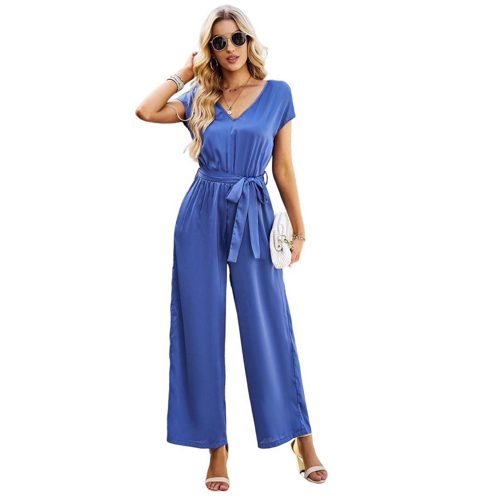 Однотонное боди для женщин, летние темпераментные пригородные свободные широкие брюки