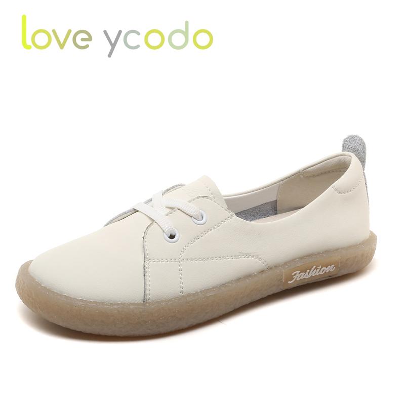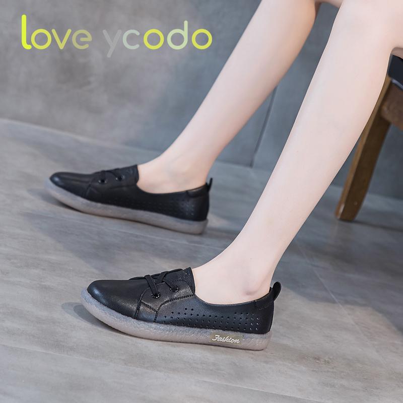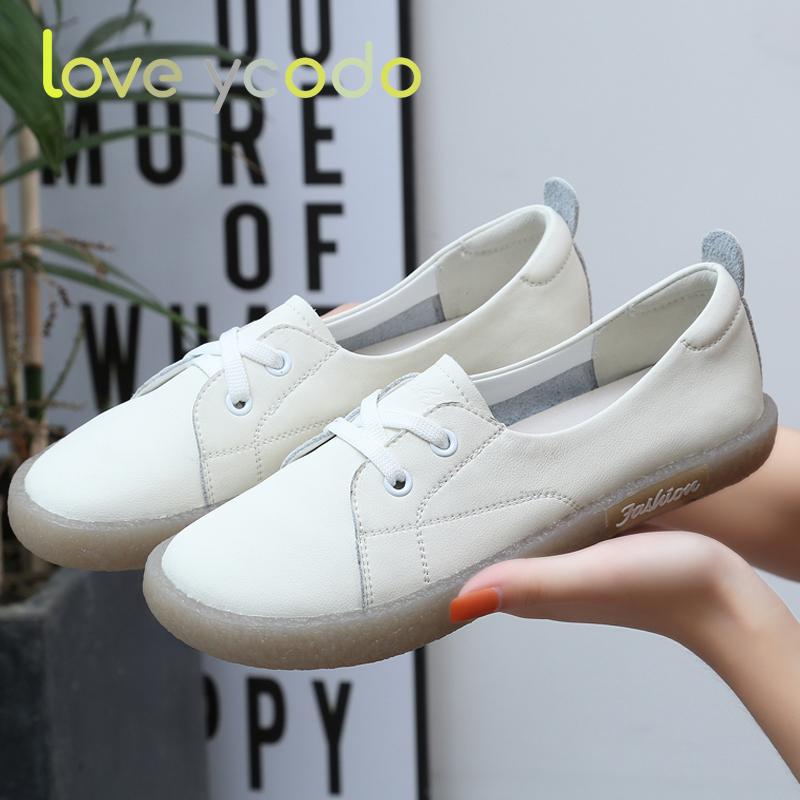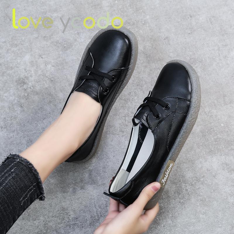 Весенне-летние повседневные лоферы на плоской подошве большого размера для женщин и девочек-студентов из натуральной кожи с низким верхом