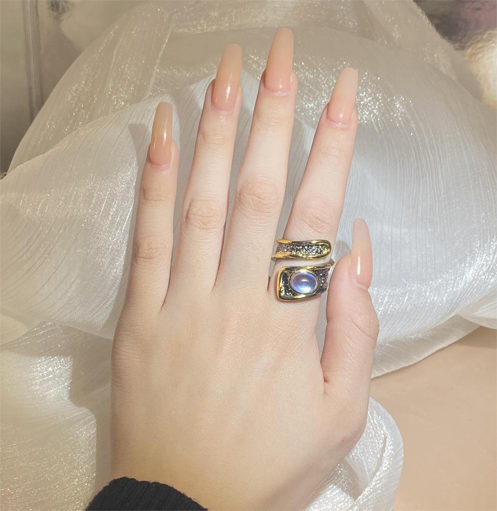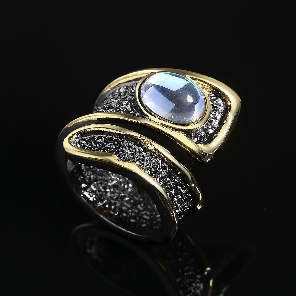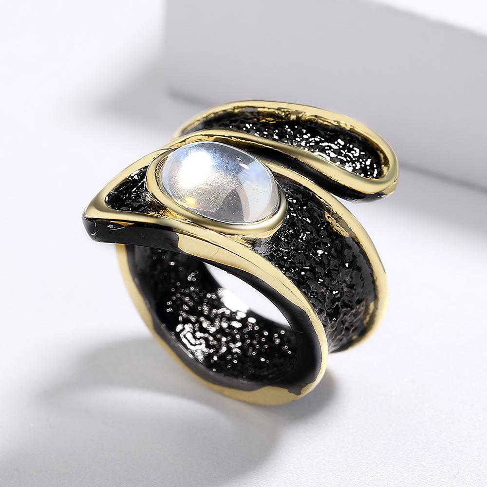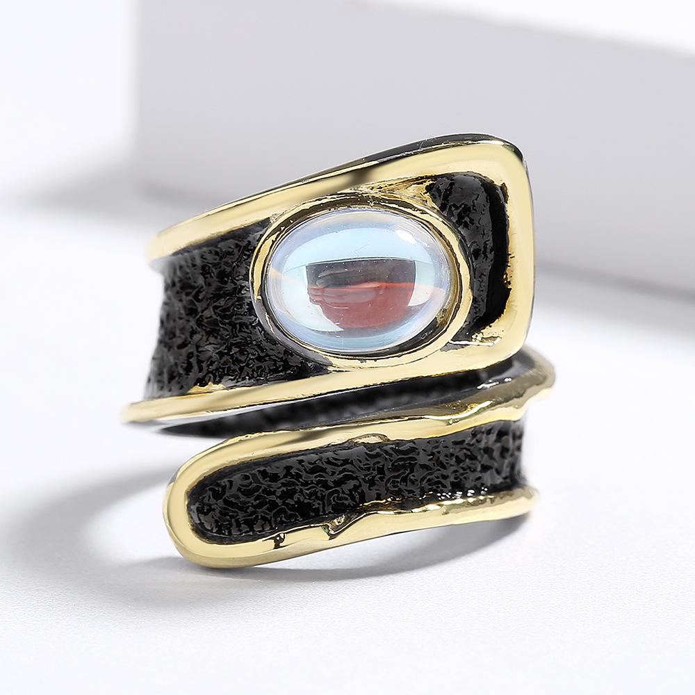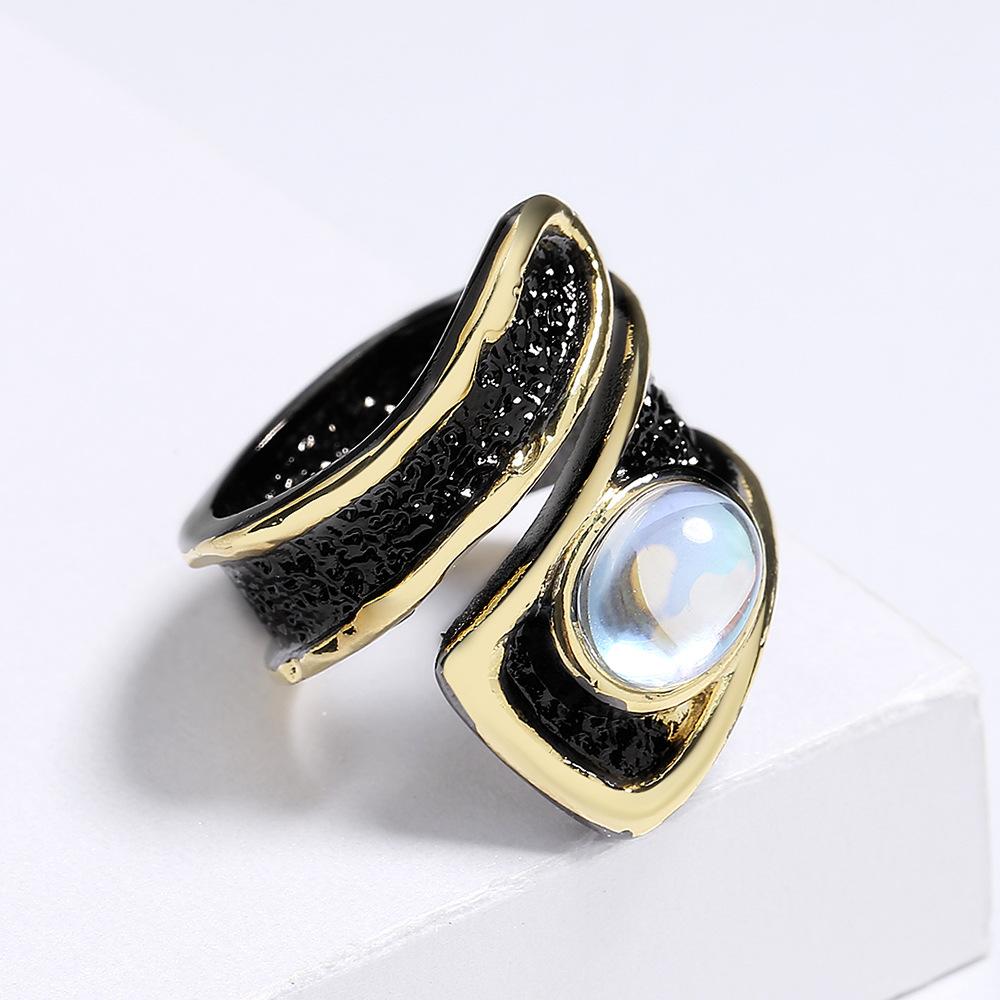 Креативное кольцо с лунным камнем неправильной формы для женщин, модные ювелирные изделия для вечеринок, ювелирные изделия из черного золота, регулируемое кольцо, двухцветное ювелирное изделие, обручальное кольцо