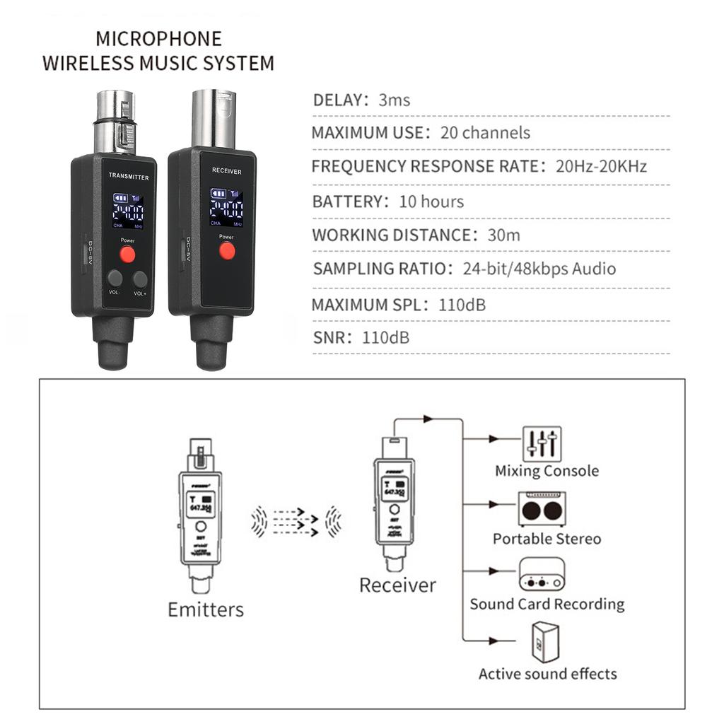 Стабильный и междугородний прием: Беспроводная передача с расстоянием срабатывания 30 м, защита от помех и свиста, чистый звуковой эффект.