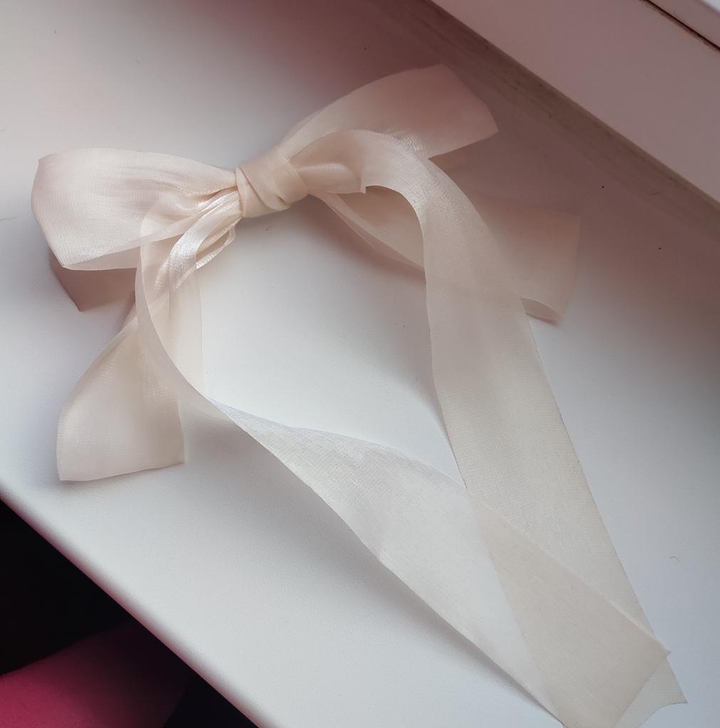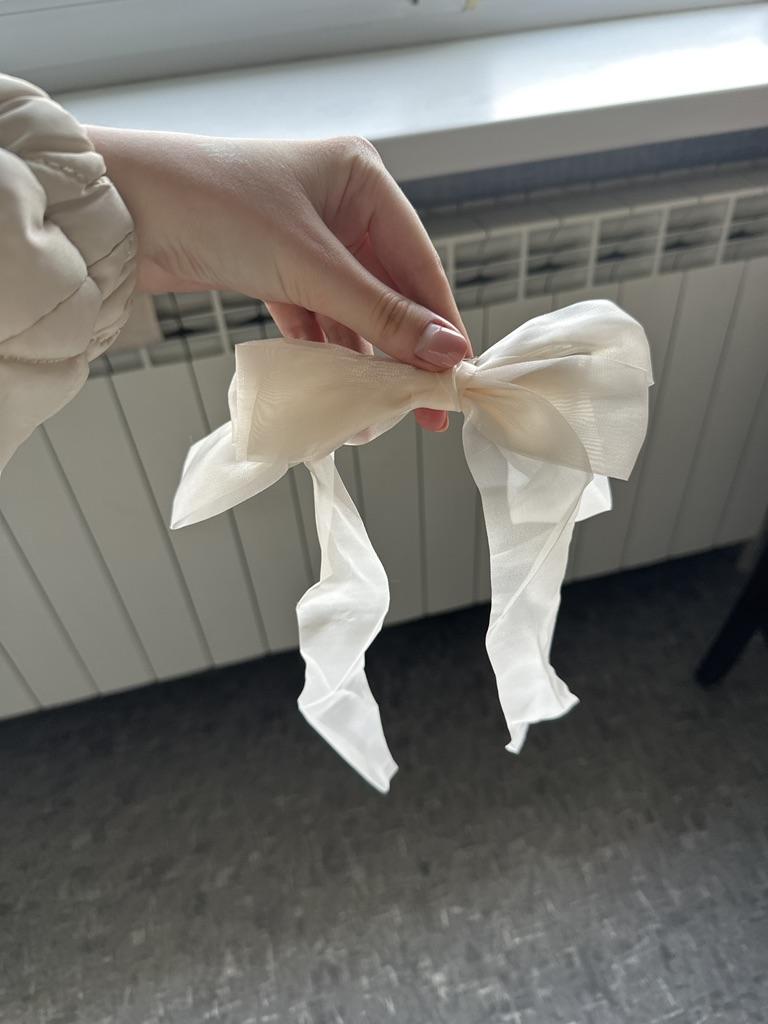 Заколка-бант прекрасно дополняет образ, делая его нежным и очаровательным. Единственный минус - на фото при заказе цвет казался более бежевым, кремовым, а пришел просто белый.
