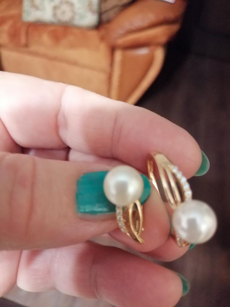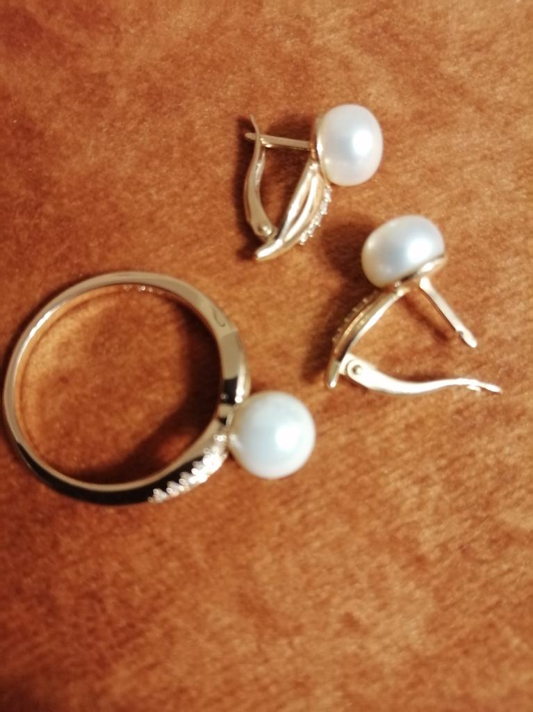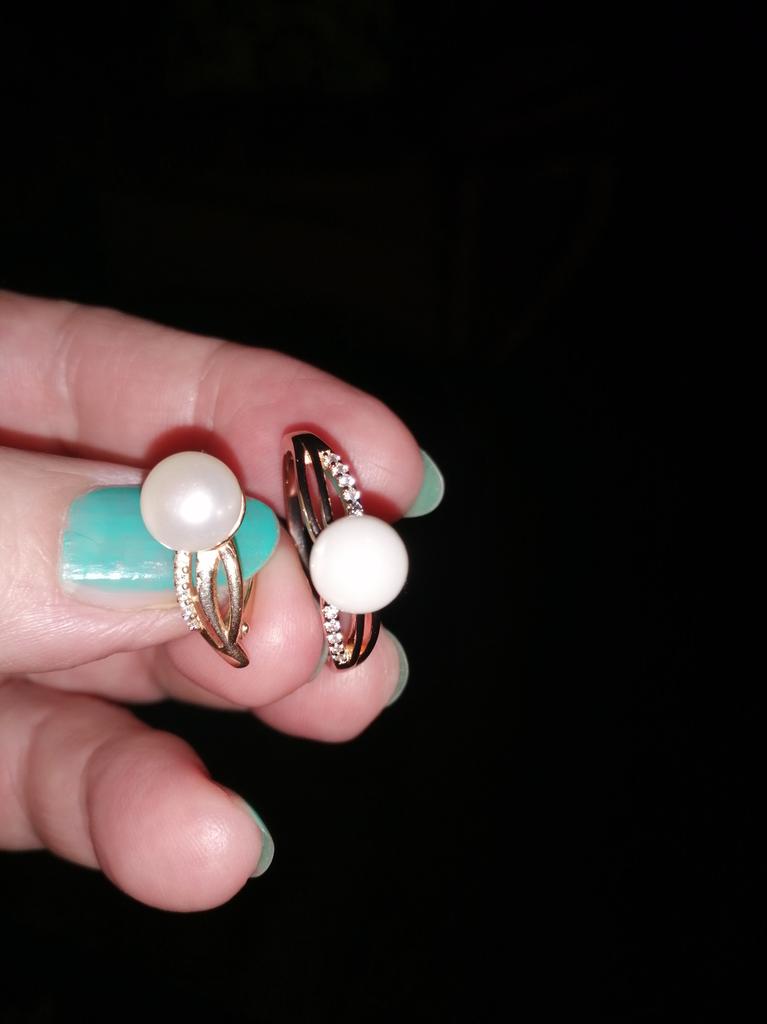 Кольцо очень понравилось. Нежное, цвет, как у золота 583 пробы. Рядом серьги аналогичного дизайна, но выполнены из золота и с натуральным жемчугом. Единственное отличие, что у кольца у жемчужины нет подошвы. Опасаюсь, чтоб бусина не отвалилась. А так, довольна покупкой. Получился комплект, хоть и кольцо за 241 руб🤗