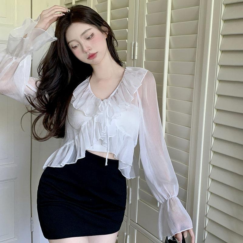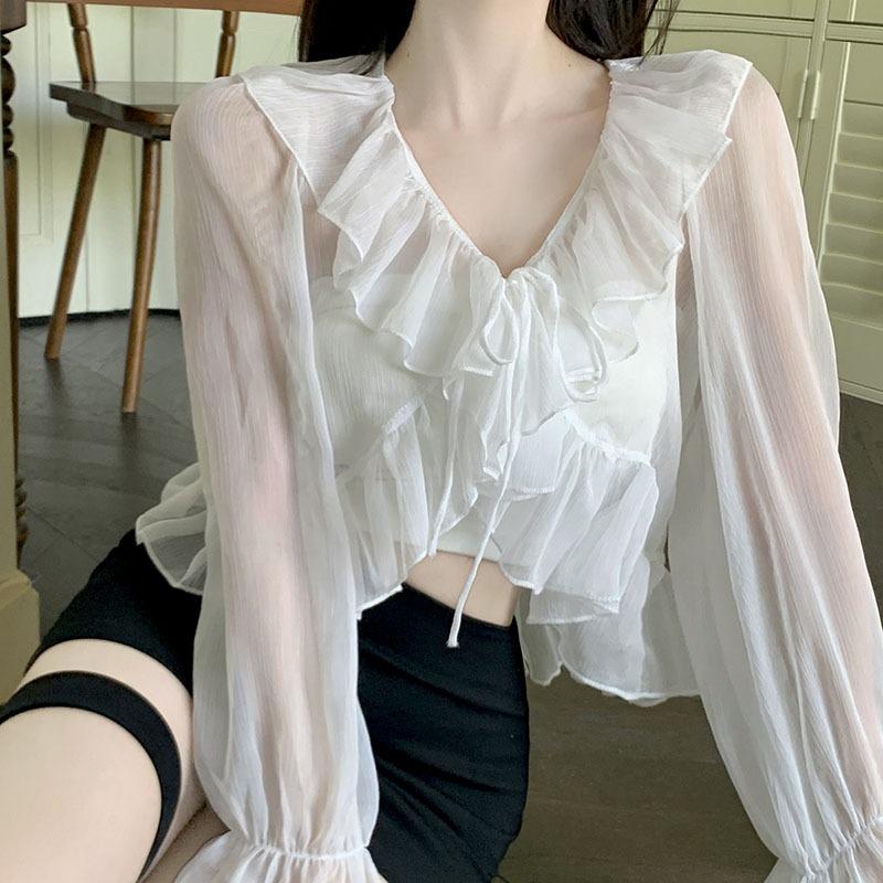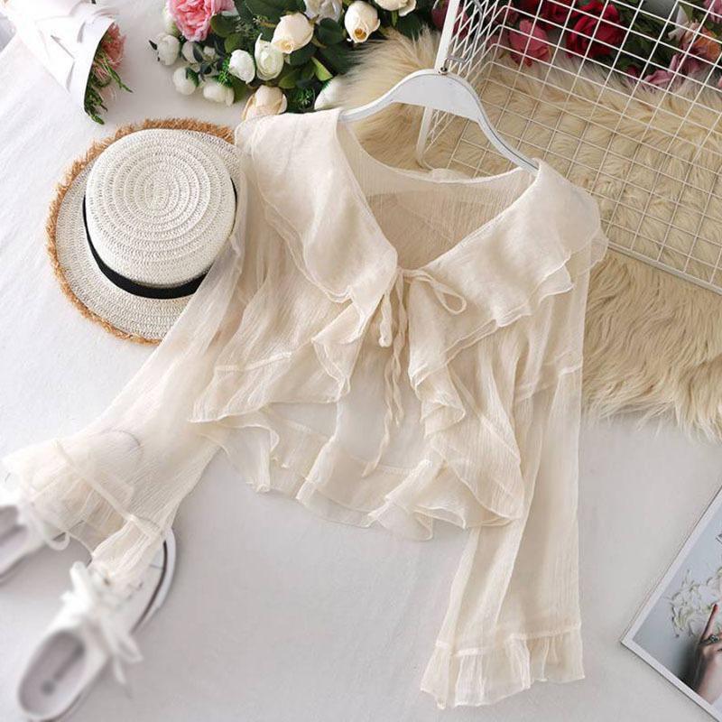 Характеристики: расклешенные рукава, оборки, галстуки, укороченные, солнцезащитный крем, кардиган, топ, женский внешний слой