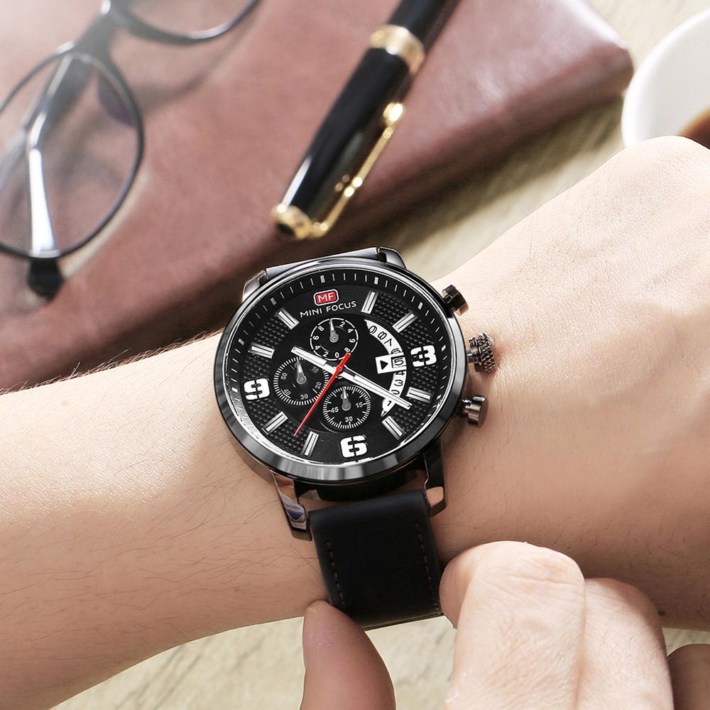Лучшие роскошные спортивные часы с коробкой Mini Focus, модные мужские часы с календарем, водонепроницаемые мужские кварцевые часы