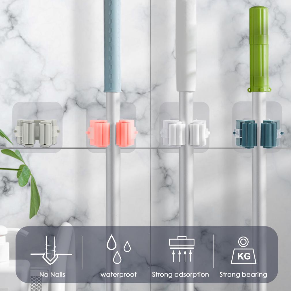 2 шт., держатель для метлы, настенный органайзер для швабры, держатель для щетки, вешалка для метлы, стеллаж для хранения, кухонная вешалка, зажим, бесшовный крючок для швабры