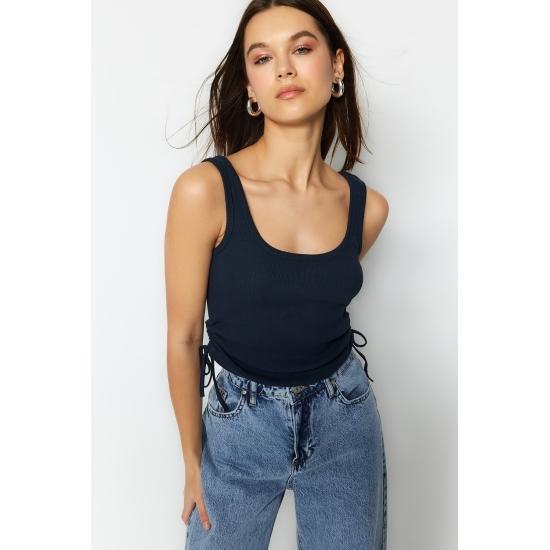 Эластичный вязаный трикотажный трикотажный майка в рубчик с вырезом у бассейна