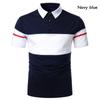 Новая летняя модная деловая мужская рубашка-поло с тремя контрастными цветами и воротником-поло, облегающая рубашка с короткими рукавами