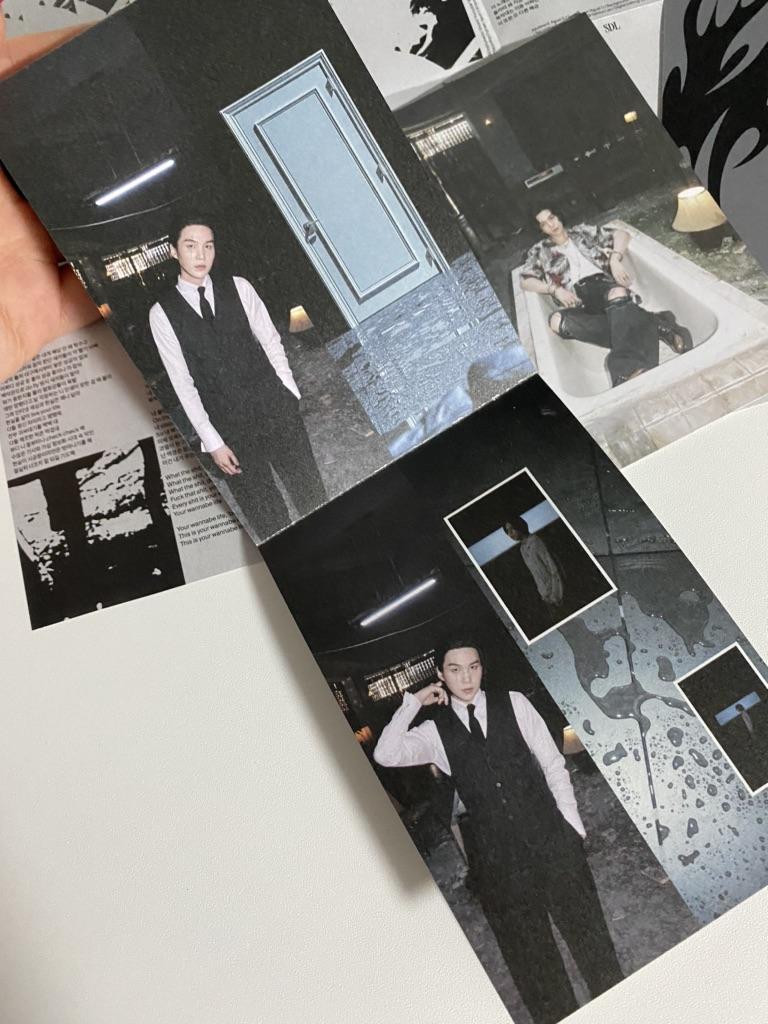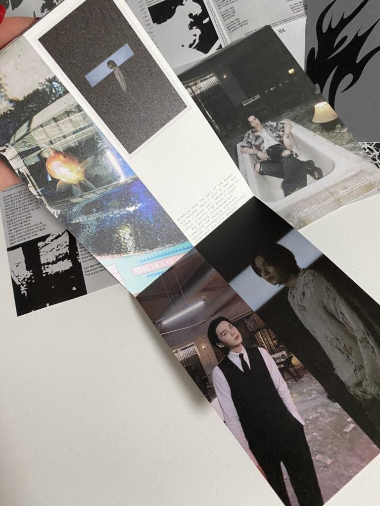 Первый раз заказывала виверс версию, сначала думала что она мне не очень то и нужна, но все таки купила) как говорится картона много не бывает. Фотобук хоть и не большой, но очень красивый, лирик чисто кусочек газеты (лучшая газета в мире) Карточка милейшая просто 🥹 Любите Юнги)