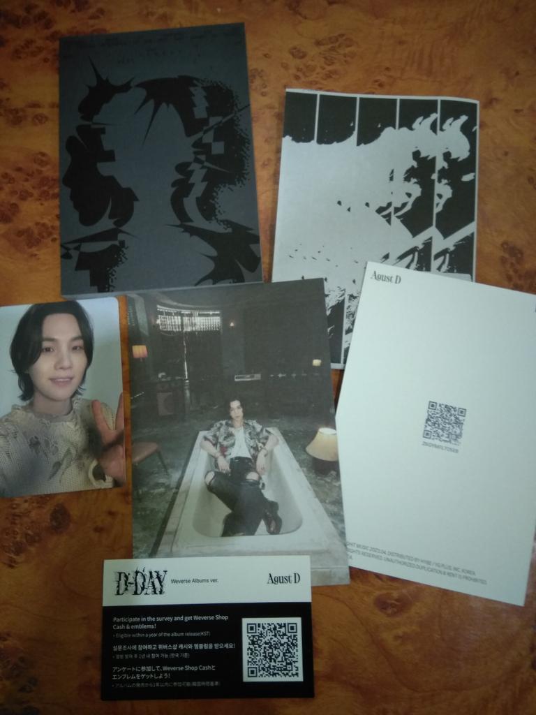 Заказывала альбом DDay Suga BTS 8.05 и пришло 8.06. От Южной Кореи и до Казани шёл ровно месяц и отслеживался весь маршрут. Заказ пришел в идеальном состоянии без всяких повреждений. Этот альбом без диска, но песни можно найти на Wewerse. Самое главное скачать это приложение. Сам альбом состоит из буклета песен, фото Юнги, фотобука. А так заказом довольна. Спасибо большое продавцу и Джум