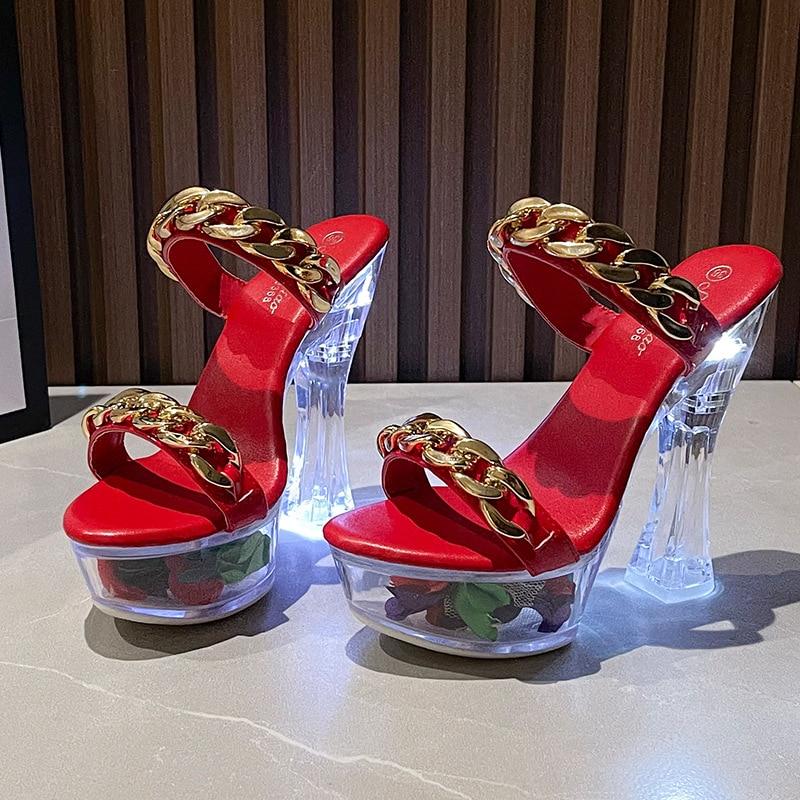 Женская обувь, пикантные шлепанцы на высоком каблуке со светящейся металлической пряжкой и кристаллами, серия 10365, каблук 14 см, платформа 4 см, LFD — купить товар онлайн с бесплатной доставкой по всему миру!